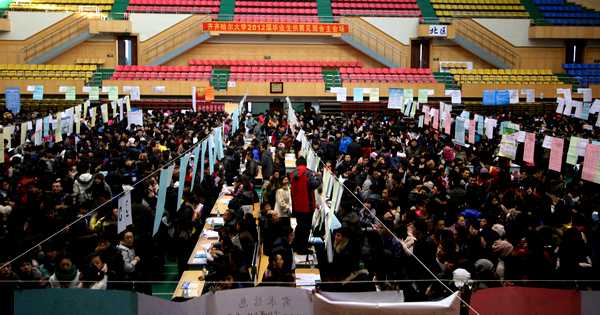 搭建雙選平臺(tái),做好就業(yè)服務(wù),2011年11月30日,“齊齊哈爾大學(xué)2012屆畢業(yè)生供需見(jiàn)面會(huì)”在體育館召開(kāi),來(lái)自國(guó)內(nèi)10余?。ㄖ陛犑校┑?54家企事業(yè)用人單位提供了5603個(gè)職位供畢業(yè)生雙向選擇,6000余名應(yīng)屆畢業(yè)生入場(chǎng)參加了本次供需見(jiàn)面會(huì)。