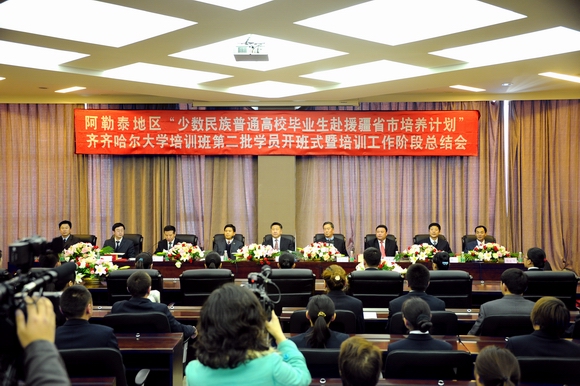 10月25日下午,新疆阿勒泰地區(qū)“少數(shù)民族普通高校畢業(yè)生赴援疆省市培養(yǎng)計劃”齊齊哈爾大學培訓班第二批學員開班式暨培訓工作階段總結會,在我校德潤大廈四樓會議室隆重舉行。自此,阿勒泰地區(qū)第二批21名參訓學員正式開始了他們在我校的學習生活。