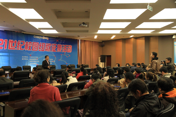 “21世紀(jì)校園組歌征集活動系列講座”活動由中國音樂學(xué)院主辦,以教育部思政司、共青團(tuán)中央學(xué)校部、全國學(xué)聯(lián)秘書處、中共北京教育工委、北京市教委、共青團(tuán)北京市委為指導(dǎo)單位,在北京市委教育工委的領(lǐng)導(dǎo)下,全國部分高校黨委書記、團(tuán)委書記、學(xué)生會主席、部分作曲教授、聲樂教授擔(dān)任組委會成員,以“搭建高校交流之橋、助力校園歌曲發(fā)展”為目的,力爭在“推廣活動主題宗旨、深化高校音樂互動、挖掘原創(chuàng)新生力量、征集優(yōu)秀校園歌曲”等方面取得較大進(jìn)展。