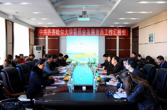 會上,學校黨委副書記蓋元臣同志代表學校對省委組織部、省委高校工委等各位領(lǐng)導蒞臨我校檢查指導工作表示熱烈歡迎,并對省委、省委高校工委、齊齊哈爾市委多年來對我校發(fā)展黨員工作給予的大力支持和指導表示衷心感謝。黨委組織部部長齊宏偉同志從基本情況、主要做法、努力方向三個方面對我校2007年以來發(fā)展黨員工作情況進行了全面、細致的匯報。闡述了我校多年來在發(fā)展黨員工作實踐中堅持標準、不斷創(chuàng)新、完善機制的一系列做法,系統(tǒng)概括了工作中形成的“四大體系”,即:注重培養(yǎng),從源頭上保證發(fā)展黨員質(zhì)量體系;務求嚴謹,從程序上完善發(fā)展黨員工作體系;活化載體,從內(nèi)容上健全黨員教育管理體系;立足長遠,從機制上夯實黨員質(zhì)量監(jiān)督保障體系。突出了我校發(fā)展黨員工作的亮點,彰顯了我校黨委多年來用高標準,嚴規(guī)范引航發(fā)展黨員工作所取得的成績。