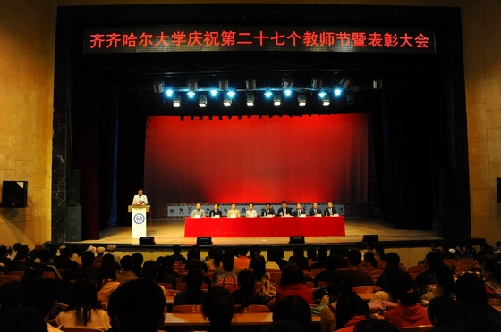 會(huì)上,黨委副書記王鳳琴同志宣讀省教育廳《關(guān)于下發(fā)2010年度龍江學(xué)者招聘和續(xù)聘人員名單及做好相關(guān)聘任工作的通知》;校黨委副書記蓋元臣同志宣讀兩年來學(xué)校獲得的集體綜合獎(jiǎng)項(xiàng)和獲得全國職業(yè)道德先進(jìn)個(gè)人等個(gè)人獎(jiǎng)項(xiàng)名單;副校長(zhǎng)姜守訓(xùn)同志宣讀獲得黑龍江省2009、2010年度科學(xué)技術(shù)獎(jiǎng),黑龍江省第十三、十四屆社會(huì)科學(xué)優(yōu)秀科研成果獎(jiǎng)等個(gè)人獎(jiǎng)項(xiàng)名單;副校長(zhǎng)鄭喜群同志宣讀黑龍江省首屆教學(xué)新秀獎(jiǎng)、齊齊哈爾大學(xué)第三屆教學(xué)名師獎(jiǎng)和首屆教學(xué)新秀獎(jiǎng)等個(gè)人獎(jiǎng)項(xiàng)名單。