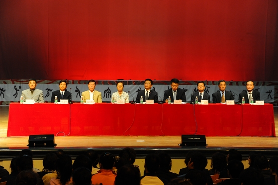 校長(zhǎng)馬立群結(jié)合今年教師節(jié)主題“忠誠黨的教育事業(yè),落實(shí)教育規(guī)劃綱要”和《教育規(guī)劃綱要》關(guān)于加強(qiáng)師資隊(duì)伍建設(shè),建立師德高尚、業(yè)務(wù)精湛、充滿活力的專業(yè)化高素質(zhì)師資隊(duì)伍的要求,以30多年從事教育事業(yè)的感受,提出三點(diǎn)希望和要求: