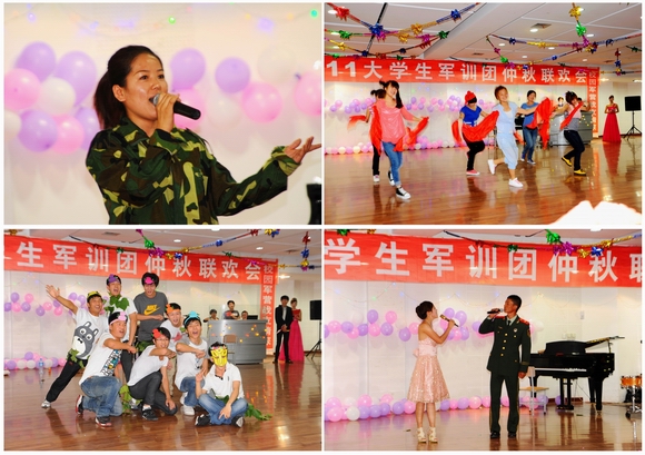 聯(lián)歡會(huì)在合唱《我們用愛歌唱》中拉開了帷幕。軍訓(xùn)團(tuán)政治處副主任黃偉中代表軍訓(xùn)團(tuán)向廣大官兵師生致中秋賀詞。軍訓(xùn)團(tuán)參謀長邵丙軍、政治處副主任黃偉中代表學(xué)校向承訓(xùn)部隊(duì)官兵贈(zèng)送了中秋月餅,表達(dá)了學(xué)校對承訓(xùn)部隊(duì)官兵的關(guān)愛與祝福。聯(lián)歡會(huì)節(jié)目形式多樣、異彩紛呈。歌曲聯(lián)唱、大合唱、舞蹈、寢室情景短劇等節(jié)目不時(shí)將聯(lián)歡會(huì)推向高潮,博得了臺下的陣陣掌聲。