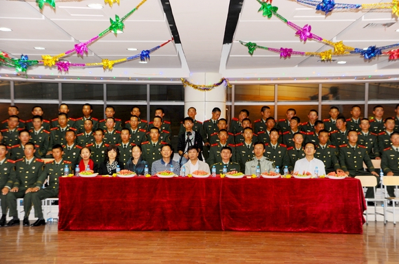 在軍訓(xùn)團(tuán)全體官兵師生大合唱《當(dāng)兵的人》的歌聲中,“軍民團(tuán)結(jié)一家親”軍訓(xùn)團(tuán)中秋聯(lián)歡會(huì)圓滿結(jié)束。