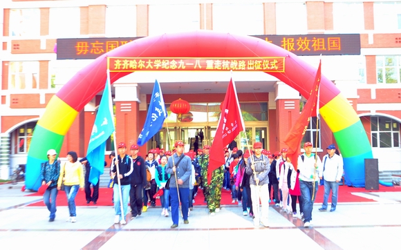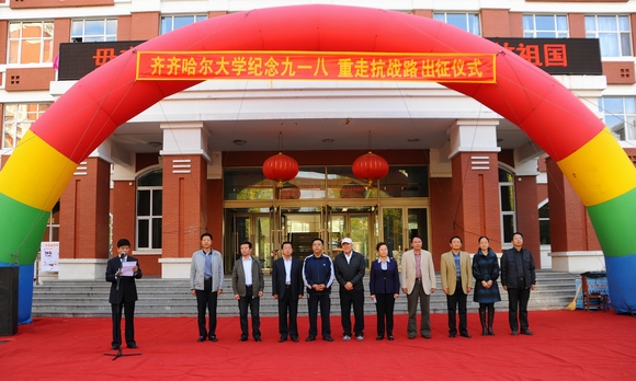 今年是震驚中外的九一八事變暨江橋抗戰(zhàn)80周年,在這個(gè)特殊的日子里,由齊齊哈爾大學(xué)主辦,市委宣傳部、市社科聯(lián)、江橋抗戰(zhàn)研究會(huì)、泰來(lái)縣委縣政府、江橋鎮(zhèn)黨委鎮(zhèn)政府協(xié)辦的“紀(jì)念九一八暨江橋抗戰(zhàn)80周年大學(xué)生重走抗戰(zhàn)路”出征儀式在我校中區(qū)廣場(chǎng)隆重舉行。