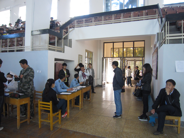 2011年9月20日(周二)下午,學(xué)生指導(dǎo)中心在二樓多媒體教室召開現(xiàn)場(chǎng)說(shuō)明講解會(huì),發(fā)放報(bào)名表,現(xiàn)場(chǎng)咨詢答疑。報(bào)考大學(xué)生飛行員的學(xué)生于9月21日(周三)下午將報(bào)名表提交至學(xué)生指導(dǎo)中心進(jìn)行審核和統(tǒng)計(jì)。9月22日早晨,學(xué)生指導(dǎo)中心老師組織報(bào)名學(xué)生在學(xué)生指導(dǎo)中心一樓統(tǒng)一集合,由學(xué)生指導(dǎo)中心副主任吳剛帶隊(duì)到齊齊哈爾市第一中學(xué)參加初檢。