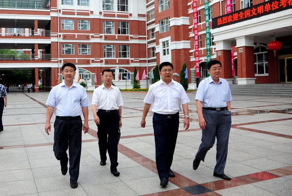 按照中央精神文明建設(shè)指導(dǎo)委員會(huì)《關(guān)于評(píng)選表彰全國(guó)文明城市、文明村鎮(zhèn)、文明單位的暫行辦法》的規(guī)定,根據(jù)中央文明辦《關(guān)于做好第三批全國(guó)文明城市、文明村鎮(zhèn)、文明單位等推薦工作的通知》要求,按照省文明辦和市文明辦的部署,7月9日,以省文明辦專職副主任袁克敏為組長(zhǎng),省文明辦秘書(shū)處處長(zhǎng)牟喜穎,省文明辦秘書(shū)處科長(zhǎng)梁?jiǎn)吹葹槌蓡T的全國(guó)文明單位考核組一行3人,在市委宣傳部常務(wù)副部長(zhǎng)、市文明辦主任李景利的陪同下蒞臨我校,對(duì)我校創(chuàng)建全國(guó)文明單位工作進(jìn)行了考核。