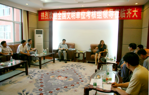考核組一行聽(tīng)取了我校黨委副書(shū)記、校文明委副主任王鳳琴代表學(xué)校所作的題為《鞏固成果 創(chuàng)新思路 努力開(kāi)創(chuàng)文明單位創(chuàng)建工作新局面》的專題工作匯報(bào)。匯報(bào)思路清晰,簡(jiǎn)明扼要,重點(diǎn)突出,集中體現(xiàn)了我校全國(guó)文明單位創(chuàng)建的“六個(gè)三”工作模式(“突出三個(gè)著眼點(diǎn),不斷深化文明單位創(chuàng)建工作的內(nèi)涵”、“強(qiáng)化三個(gè)著力點(diǎn),不斷提高師生員工的思想道德素質(zhì)”、“把握三個(gè)關(guān)鍵點(diǎn),不斷提升文明單位創(chuàng)建工作的實(shí)效”、“打造三個(gè)閃光點(diǎn),不斷形成齊大精神文化品牌”、“圍繞三個(gè)生長(zhǎng)點(diǎn),不斷推進(jìn)高水平大學(xué)建設(shè)步伐” 和“夯實(shí)三個(gè)支撐點(diǎn),不斷完善文明單位創(chuàng)建工作的長(zhǎng)效機(jī)制”), 實(shí)現(xiàn)了文明單位創(chuàng)建工作的科學(xué)化、制度化、規(guī)范化,并不斷將創(chuàng)建工作提升到文明自覺(jué)的高度,用新理念引領(lǐng)文明單位創(chuàng)建工作科學(xué)發(fā)展,向更高的目標(biāo)邁進(jìn)。