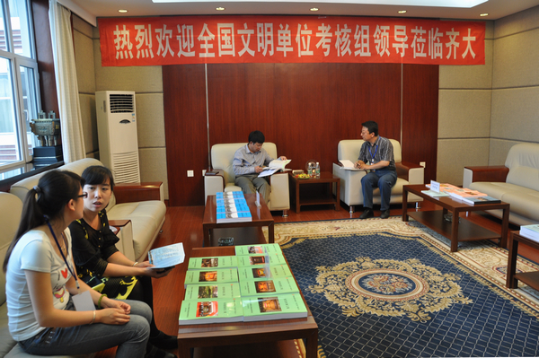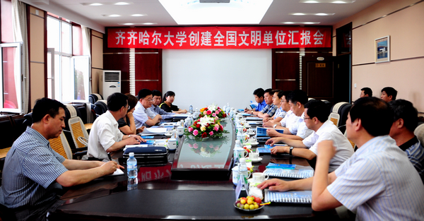 考核組一行在我校中區(qū)辦公樓504會(huì)議室召開(kāi)了“齊齊哈爾大學(xué)創(chuàng)建全國(guó)文明單位工作匯報(bào)會(huì)”。以省文明辦專職副主任袁克敏為組長(zhǎng)的全國(guó)文明單位考核組聽(tīng)取了我校工作匯報(bào)。