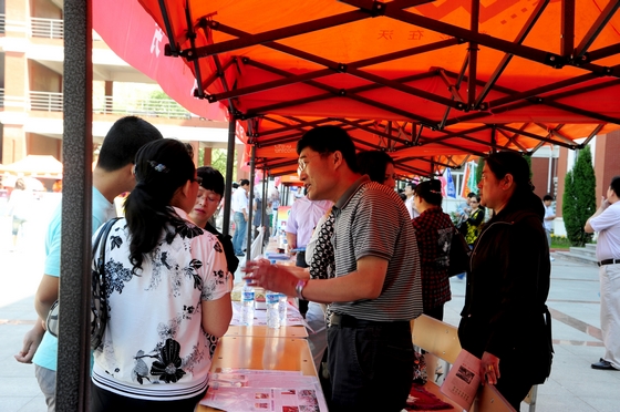 “成功起點,理想階梯,學(xué)術(shù)殿堂,精神家園——魅力齊大歡迎你”。6月13日上午,我校在中區(qū)主樓廣場前舉行“2011年校園開放日”暨高考填報志愿現(xiàn)場咨詢活動,為剛剛結(jié)束高考的考生及熱切關(guān)心志愿填報工作的學(xué)生家長提供咨詢服務(wù)。