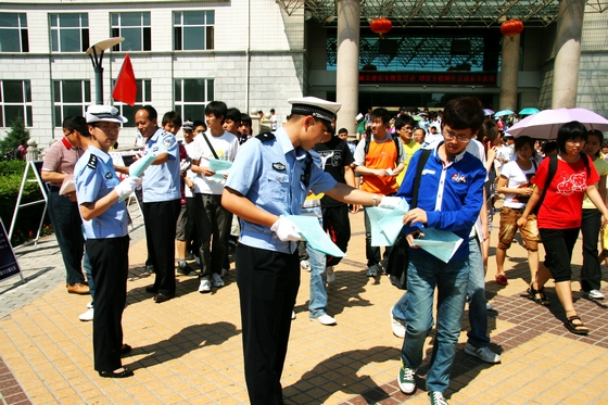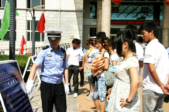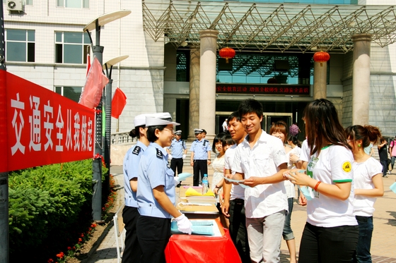 活動(dòng)吸引了大量過往師生駐足參與。建華交警大隊(duì)及我校保衛(wèi)處的干警不顧天氣炎熱,向師生們派發(fā)了交通安全知識(shí)宣傳材料,耐心講解有關(guān)政策法規(guī),并就有關(guān)問題同大學(xué)生們進(jìn)行了深入交流。