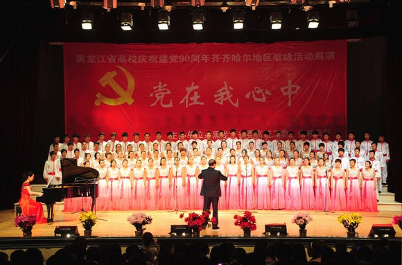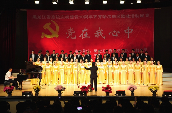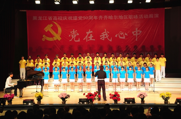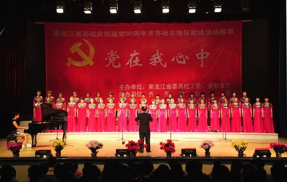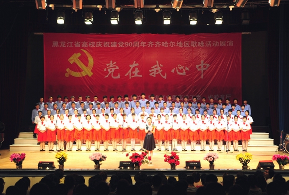 6月16日下午,由黑龍江省委高校工委、省教育廳主辦,齊齊哈爾大學(xué)承辦的“黨在我心中”黑龍江省高校慶祝建黨90周年齊齊哈爾地區(qū)歌詠活動(dòng)展演在我校文化宮隆重舉行,來(lái)自大慶職業(yè)學(xué)院、大慶師范學(xué)院、齊齊哈爾醫(yī)學(xué)院、齊齊哈爾高等師范??茖W(xué)校、齊齊哈爾大學(xué)音樂(lè)與舞蹈學(xué)院等5支代表隊(duì)共450人用嘹亮的歌聲向我們偉大的黨獻(xiàn)上真摯的祝福!