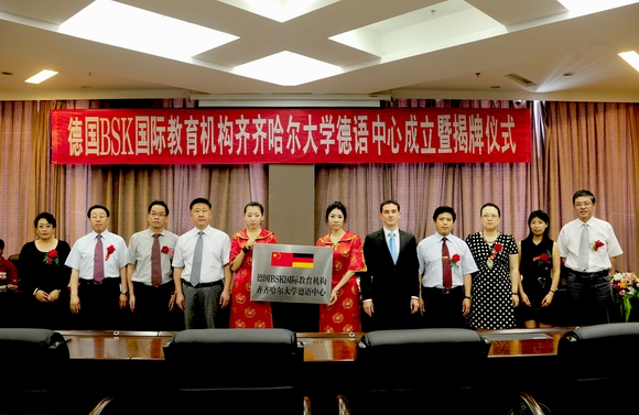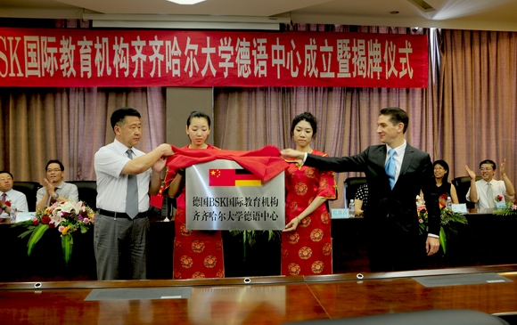 校長馬立群與費(fèi)費(fèi)康安簽署了《中國齊齊哈爾大學(xué)與德國BSK國際教育機(jī)構(gòu)關(guān)于建立德語中心的協(xié)議》、《中國齊齊哈爾大學(xué)與德國BSK國際教育機(jī)構(gòu)關(guān)于建立德語中心的師資委托代培協(xié)議》,并共同為“德國BSK國際教育機(jī)構(gòu)--齊齊哈爾大學(xué)德語中心”揭牌。