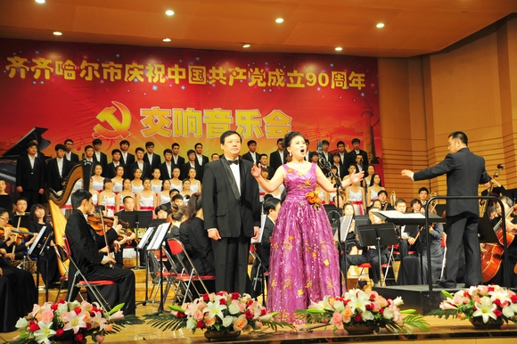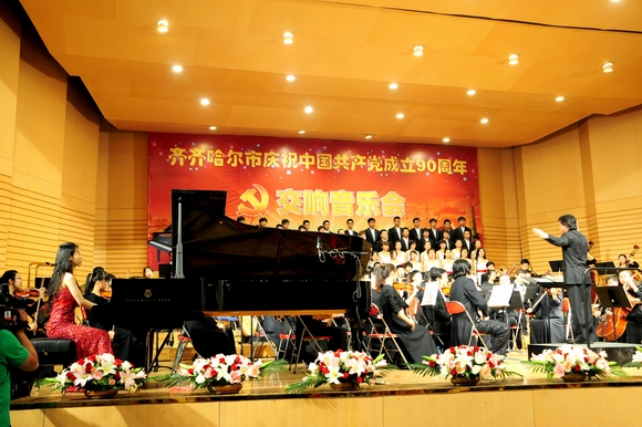 頌歌獻給黨,交響紅旗頌。6月29日晚,齊齊哈爾大學音樂廳紅歌嘹亮、掌聲如潮。由市委宣傳部、齊齊哈爾大學聯(lián)合主辦的“齊齊哈爾市慶祝中國共產(chǎn)黨成立90周年交響音樂會”在我校音樂廳隆重舉行。市委常委、宣傳部部部長王鐵靜,市委常委任士杰,市人大副主任王光、孫杰,黑龍江交通職業(yè)技術學院黨委書記史耀忠,我校領導李海紅、馬立群、王鳳琴、蓋元臣、張學軍、姜守訓、鄭喜群、鄧啟剛、王剛、呂曉輝出席音樂會。
