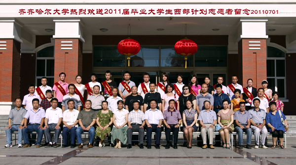 歡送儀式由校團(tuán)委書記李秀梅主持。校團(tuán)委副書記趙振華宣讀了《齊齊哈爾大學(xué)2011屆畢業(yè)大學(xué)生西部計(jì)劃志愿者名單》,各相關(guān)職能部門領(lǐng)導(dǎo)和15名志愿者所在學(xué)院的黨委書記,副書記、副院長(zhǎng)、團(tuán)委書記參加了歡送儀式。