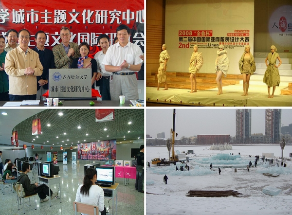 國家級特色專業(yè)——藝術設計專業(yè)以服務地方經濟為特色,構建依托東北裝備工業(yè)、動漫產業(yè)和旅游資源的區(qū)域性藝術設計人才培養(yǎng)模式。該專業(yè)積極與齊齊哈爾市政府、齊齊哈爾市旅游局和城建局合作,廣泛參與齊齊哈爾市“關東旅游文化節(jié)”的相關活動,2008年承辦了“齊齊哈爾市首屆旅游紀念品設計評選活動”;2009年,主持設計了馬恒昌主題公園,設計并制作了江橋抗戰(zhàn)紀念館中的“戰(zhàn)跡沙盤”和“紀念壁畫”及抗戰(zhàn)紀念碑,提升了本地區(qū)群眾文化層次,樹立了城市文化品牌形象。2010年,組織創(chuàng)作了齊齊哈爾市第31屆冰雪游覽會的冰雕和雪雕作品;與齊齊哈爾市蘆葦畫創(chuàng)業(yè)基地建立合作關系,為企業(yè)全面提升藝術品質。目前,該專業(yè)與齊齊哈爾市的齊二數(shù)控裝備、華鶴家具、雄鷹集團警用器材有限公司、金鼎亞麻紡織集團、中山市沙溪休閑服飾產業(yè)基地等知名大中型企業(yè)集團建立了長期的合作機制,已承接了大型動畫片《扎龍傳說》的設計制作任務。服裝設計方向積極與省內各大紡織、服裝企業(yè)開展合作的同時,創(chuàng)立了擁有自主知識產權的品牌服裝——“云霓服飾”,并于2010年參與蘭西縣亞麻精深加工合作項目,在亞麻服飾設計、亞麻產品設計、亞麻包裝與展示等方面為相關企業(yè)和部門提供智力支持。