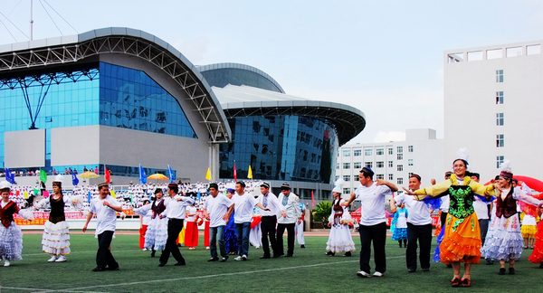 本屆運(yùn)動(dòng)會(huì)亮點(diǎn)紛呈:經(jīng)濟(jì)與管理學(xué)院等4個(gè)學(xué)院經(jīng)過一個(gè)多月時(shí)間,精心組織的大型團(tuán)體操表演、主題突出,恢宏壯觀。民族團(tuán)結(jié)一家親,和諧之音傳千里,音樂與舞蹈學(xué)院奉獻(xiàn)的民族大團(tuán)結(jié)的歌舞,以及71名來自新疆阿勒泰地區(qū)的繼續(xù)教育學(xué)院培訓(xùn)學(xué)員的積極參與,成為本屆運(yùn)動(dòng)會(huì)一道亮麗的風(fēng)景線。新組建的國旗班首次在運(yùn)動(dòng)會(huì)上亮相,英姿颯爽的風(fēng)采給我們留下了深刻的印象;意氣風(fēng)發(fā)的研究生代表隊(duì)給我們展示了我校研究生教育的新風(fēng)采。創(chuàng)意新穎的頒發(fā)獎(jiǎng)牌儀式,也成為本屆運(yùn)動(dòng)會(huì)中的一大亮點(diǎn)。