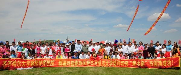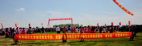 5月29日,風和日麗,嫩水歡歌。上萬名達鄉(xiāng)群眾和社會各界人士相約在嫩江西岸的莽莽草原,隆重慶祝達斡爾族第二十四屆“庫木勒”節(jié)。我校應邀與會師生與各族同胞共慶“庫木勒”節(jié),載歌載舞,聯誼聯歡,民族團結一家親的祥和氣氛灑滿大草原,特別是新疆阿勒泰地區(qū)培訓班學員的精彩演出為本屆“庫木勒”節(jié)增添了一道靚麗風景,成為節(jié)日文藝匯演的一大亮點。