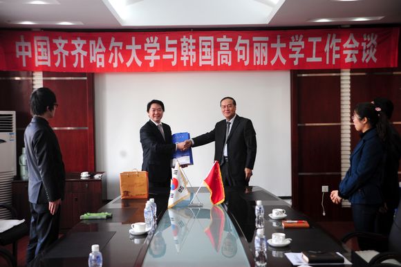 4月13日,韓國高句麗大學(xué)對外協(xié)力處處長金成眞一行三人訪問我校,我校副校長王剛會(huì)見并熱情接待了訪問團(tuán)一行,在學(xué)校504會(huì)議室,雙方舉行了工作會(huì)談。外事處處長、國際交流學(xué)院院長郭寒竹,齊齊哈爾大學(xué)駐韓國聯(lián)絡(luò)處主任張帺德會(huì)談時(shí)在座。