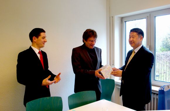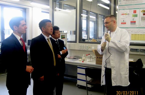 德國BSK國際教育機構(gòu)主要是在歐洲和亞洲廣泛開展跨國高等教育國際化的合作與交流,即“BSK德國大學聯(lián)盟國際教育計劃”。我校于2010年9月與該機構(gòu)建立聯(lián)系。此次出訪受到了該機構(gòu)執(zhí)行總裁Kai-A Fiedler先生的熱情接待,雙方簽署了《中德教育交流與合作框架協(xié)議書》,框架協(xié)議的簽訂,將推動中德雙方在教師、學術和科研項目方面的相互交流,促進中德兩國在合作培養(yǎng)國際化高級人才和高等教育專業(yè)建設方面的合作。在Kai-A Fiedler總裁的陪同下,我校代表團先后訪問了德國波恩德福學院和亞琛應用技術大學,雙方就教師交流、學術交流、合作培養(yǎng)國際人才等方面進行了深入的溝通,并達成了廣泛共識。德福學院院長Karl Heinrich Frauns先生向代表團詳細介紹了其德語培訓項目,在亞琛應用科技大學,在國際項目負責人Prof. Dr. Hans Josef Ackermann先生 、國際學院院長Dr. Bernd Kraus先生的陪同下,代表團參觀了化工實驗室、納米生物傳感實驗室等,其先進的硬件設施和人性化的管理模式給代表團留下了深刻的印象。