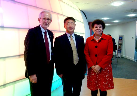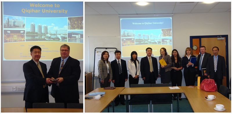 索爾福德大學校長Martin Hall、國際事務副校長Cynthia Pine、桑德蘭大學校長兼首席執(zhí)行官Peter Fidler熱情地接待了代表團。校長馬立群著重介紹了國際化環(huán)境下我校的人才培養(yǎng)目標和需求,并就引進英國優(yōu)質(zhì)教育資源服務于我校本科課程合作項目進行了深入的交流。通過友好協(xié)商,兩校校長愉快地簽署了齊齊哈爾大學與索爾福德大學的合作備忘,本科課程合作項目初步達成了共識。索爾福德大學國際事務部部長Abigail Gregory博士、語言學院院長Paul Rowlett博士以及商學院Gordon Fletcher博士等向代表團介紹了索爾福德大學的教學、科研及國際合作情況,表示近期將逐步落實英語等專業(yè)的課程合作,并非常歡迎我校教師到索爾福德大學進修和交流,希望與我校合作培養(yǎng)高水平師資人才。