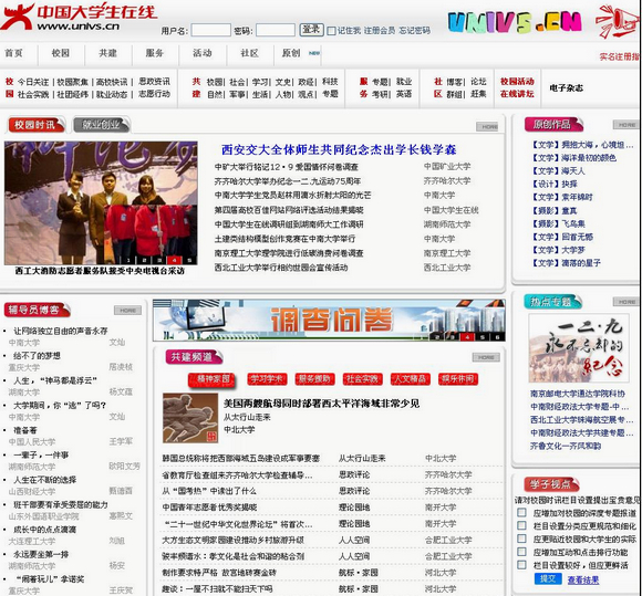 “中國大學(xué)生在線”網(wǎng)站是由國家教育部主導(dǎo)并推動(dòng),全國大學(xué)生參與,全國高校依照“共創(chuàng)、共建、共管、共用、共享”的原則,以“欄目共建、信息交互、活動(dòng)聯(lián)辦、服務(wù)共享”的方式合作共建的公益性、綜合性中國大學(xué)生門戶網(wǎng)站;是一個(gè)展示中國大學(xué)生時(shí)代風(fēng)采的新窗口、服務(wù)中國大學(xué)生成長成才的新平臺、提升中國大學(xué)生綜合素質(zhì)的新空間、引領(lǐng)中國大學(xué)生輿論方向的新坐標(biāo)。該網(wǎng)站以“弘揚(yáng)健康文化、服務(wù)大學(xué)生活、塑造大學(xué)生人格、引導(dǎo)大學(xué)生成才”為主題,貼近生活、貼近學(xué)生、貼近實(shí)際,提供和完善各項(xiàng)有益于大學(xué)生的網(wǎng)絡(luò)服務(wù),滿足大學(xué)生日益增長的成長成才需求,使網(wǎng)站成為全國大學(xué)生喜愛的網(wǎng)上精神家園。我校學(xué)生工作部主辦的“思政評論”頻道連續(xù)四年被教育部“中國大學(xué)生在線”分別授予“杰出貢獻(xiàn)獎(jiǎng)”和“十佳共建頻道”榮譽(yù)稱號;共建欄目“輔導(dǎo)員之家”曾獲全國“十佳思政類網(wǎng)站”稱號。