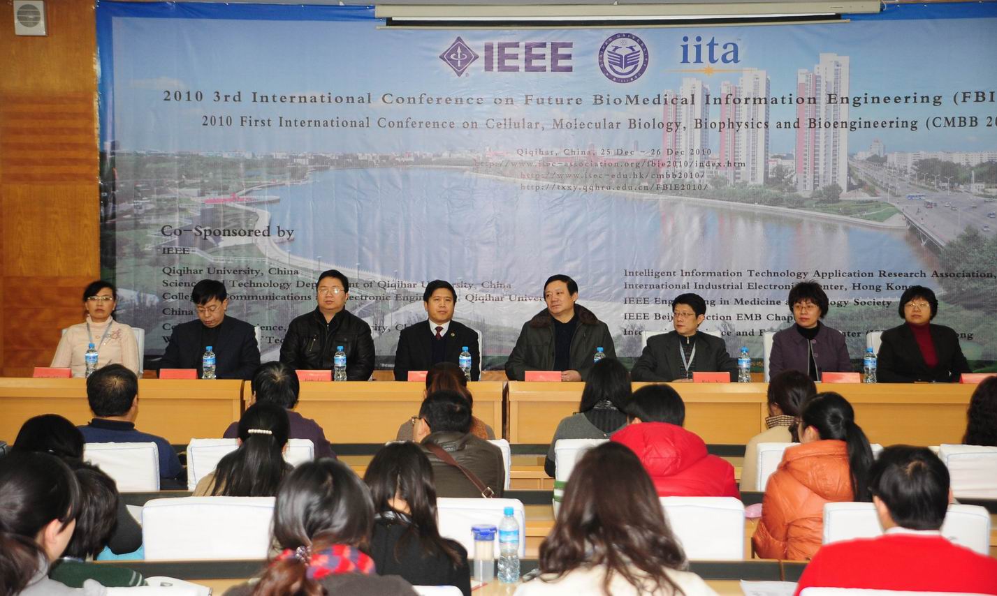 12月26日,由IEEE醫(yī)學(xué)與生物工程學(xué)會(huì)發(fā)起,齊齊哈爾大學(xué)科技處、齊齊哈爾大學(xué)通信與電子工程學(xué)院、齊齊哈爾大學(xué)生命科學(xué)與農(nóng)林學(xué)院和IITA協(xié)會(huì)共同承辦的FBIE2010和CMBB2010國(guó)際學(xué)術(shù)會(huì)議在我校西主學(xué)術(shù)報(bào)告廳隆重召開(kāi),來(lái)自清華大學(xué)、北京大學(xué)、北京航空航天大學(xué)等國(guó)內(nèi)高校、科研院所和澳大利亞昆士蘭科技大學(xué)、新西蘭梅西大學(xué)、臺(tái)灣國(guó)立中央大學(xué)、臺(tái)北科技大學(xué)等國(guó)家和地區(qū)的高校共196人參加了學(xué)術(shù)會(huì)議。我校副校長(zhǎng)鄭喜群、鄧啟剛出席開(kāi)幕式,副校長(zhǎng)鄧啟剛代表學(xué)校致歡迎詞。通信與電子工程學(xué)院常務(wù)副院長(zhǎng)姚仲敏代表承辦單位致辭。