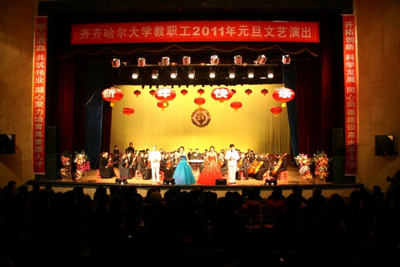 2010年12月29日下午,學(xué)校工會(huì)在文化宮隆重舉辦教職工慶元旦文藝演出。學(xué)校領(lǐng)導(dǎo)馬立群、王鳳琴、蓋元臣、張學(xué)軍、姜守訓(xùn)、鄭喜群、鄧啟剛、呂曉輝和各學(xué)院黨政工領(lǐng)導(dǎo)以及全校1500名師生員工觀看了演出。
