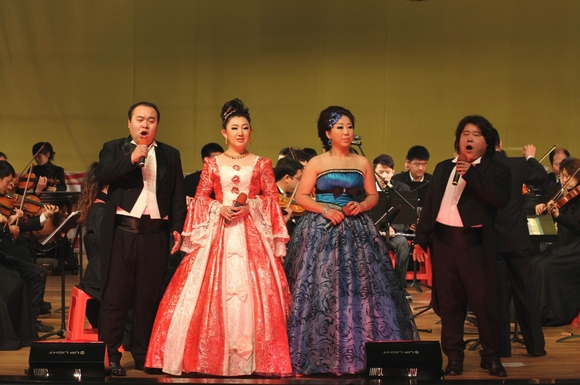 演出在音樂與舞蹈學(xué)院胡佳昕、張喜秋、陳曉鵬、孫博的四重唱《飲灑歌》中圓滿落下帷幕。兩個(gè)小時(shí)的文藝演出異彩紛呈,高潮迭起,贏得了觀眾陣陣喝彩,文化宮內(nèi)不時(shí)響起熱烈的掌聲。