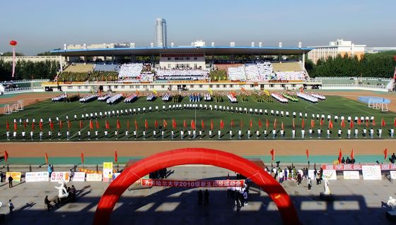 副校長姜守訓(xùn)宣布:“齊齊哈爾大學(xué)2010級(jí)新生運(yùn)動(dòng)會(huì)開幕!”會(huì)場鳴禮炮19響,彩花繽紛。體育教育專業(yè)101班潘立偉同學(xué)作為運(yùn)動(dòng)員代表、體育教育專業(yè)081班楊雪峰同學(xué)作為裁判員代表分別宣誓。