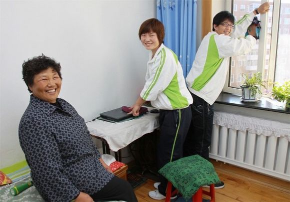 “孝親敬老,雛鳥還巢”,我校團員青年“情系空巢老人,勇?lián)鐣?zé)任”。齊齊哈爾作為較早進入老齡化的城市,具不完全統(tǒng)計,目前共有空巢老人6.59萬,其中市區(qū)2.22萬人,并有逐年增多的趨勢??粘怖先松睢⒄樟?、護理、精神慰藉等問題已經(jīng)成為社會關(guān)注的熱點和難題。自2008年起,校團委就積極響應(yīng)團市委向全市青少年發(fā)出的“從自身做起,孝敬父母、尊敬老人,為親人和老人送去關(guān)愛”號召,積極組織我校團員青年參加到"鳥還巢"青春助老志愿服務(wù)行動中來,并且形成了一支專業(yè)化、常態(tài)化的志愿者隊伍。2009年度“齊齊哈爾市‘鳥還巢’優(yōu)秀志愿服務(wù)明星”稱號獲得者、我校青年志愿者協(xié)會會長鐘迪同學(xué)說:“‘鳥還巢’青春助老行動,為我們這些遠離家鄉(xiāng)的青年學(xué)生搭建了一個關(guān)注老人、服務(wù)社會的平臺,教育和引導(dǎo)我們青年學(xué)生富有孝心、奉獻愛心。這又是一項長期的工作。在今后的志愿服務(wù)中,我們要將一系列有利于老年人身心健康的活動帶到老人家中,進一步弘揚尊老、愛老這一傳統(tǒng)美德,為空巢老人提供我們力所能及的幫助,滋潤空巢老人的心?!?/p>