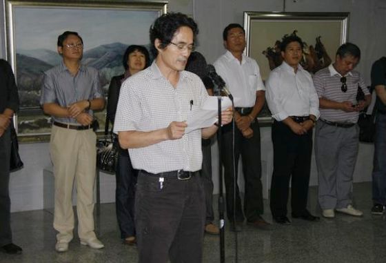 該會(huì)會(huì)長、我校美術(shù)與藝術(shù)設(shè)計(jì)學(xué)院副院長馬振慶致開幕詞,市社科聯(lián)副主席金峰平對(duì)此次書畫展的成功舉辦表示熱烈祝賀,對(duì)參展的書畫作品給予了高度評(píng)價(jià)。副校長鄭喜群同市文聯(lián)主席莊樹謙、副主席金峰平、市教育教學(xué)研究院院長王福義、我校美術(shù)與藝術(shù)設(shè)計(jì)學(xué)院副院長馬振慶會(huì)長等為本展覽剪彩。齊齊哈爾市青少年書畫教育研究會(huì)秘書長關(guān)薇主持開幕式。