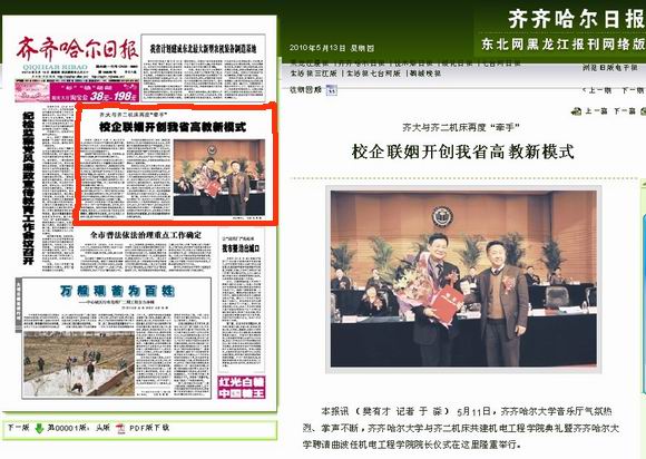 5月11日,齊齊哈爾新聞網(wǎng):校企聯(lián)姻共建機(jī)電工程學(xué)院