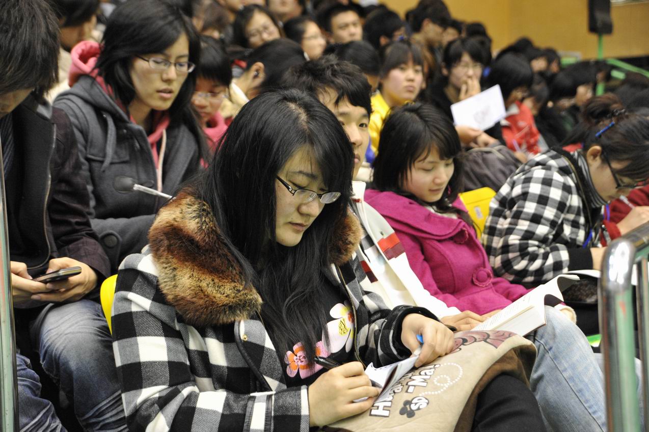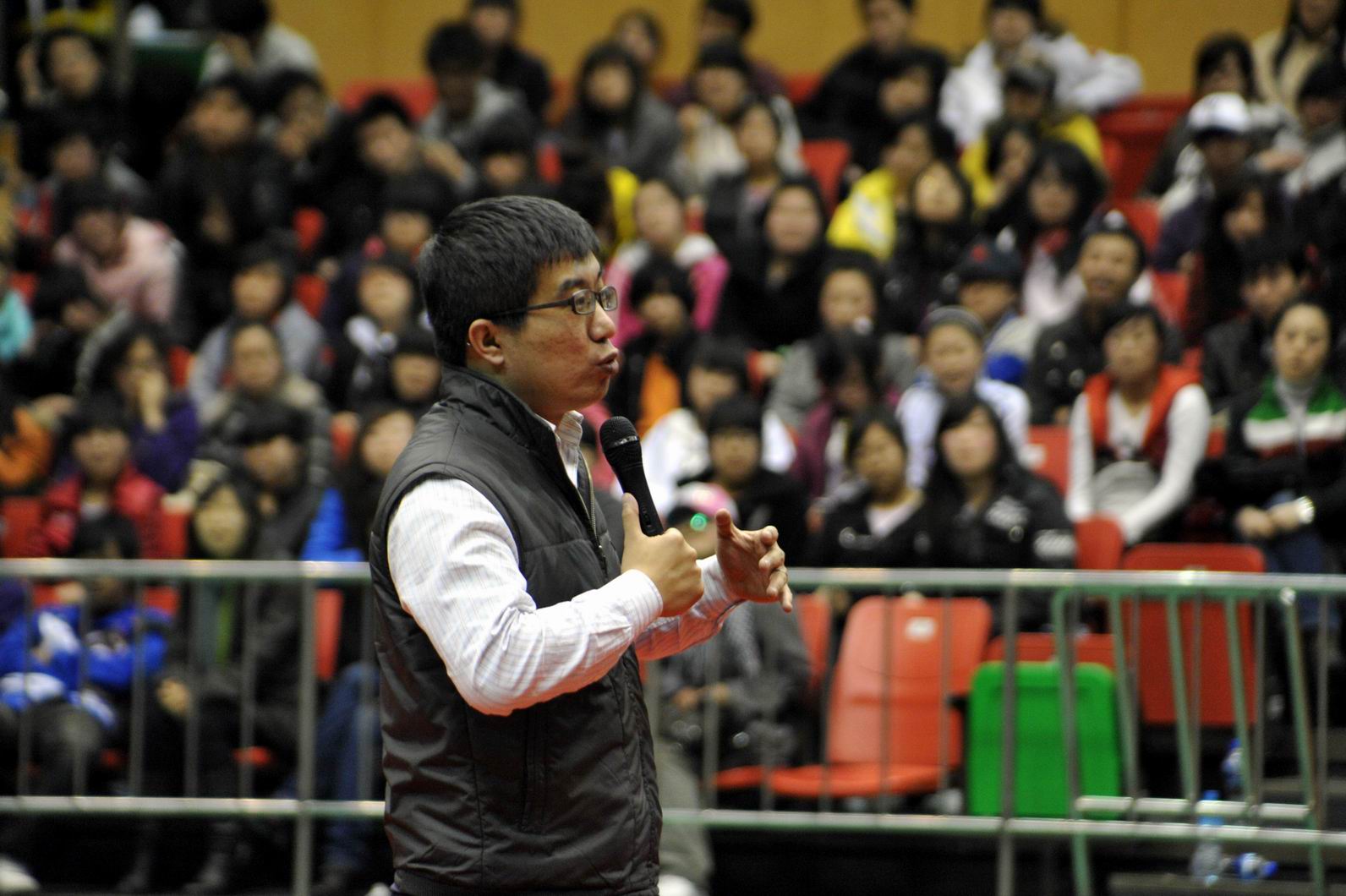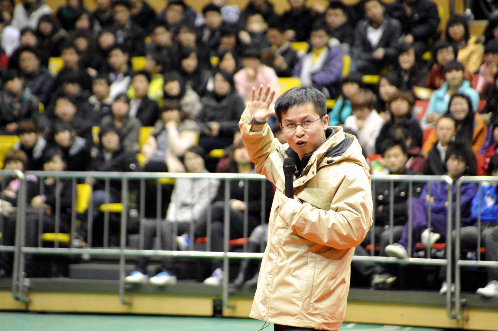 老師們生動(dòng)、風(fēng)趣、幽默的演講,打動(dòng)了在場(chǎng)的每一位學(xué)生,大家禁不住鼓掌、歡呼,體育館內(nèi)不時(shí)傳出陣陣熱烈的掌聲。