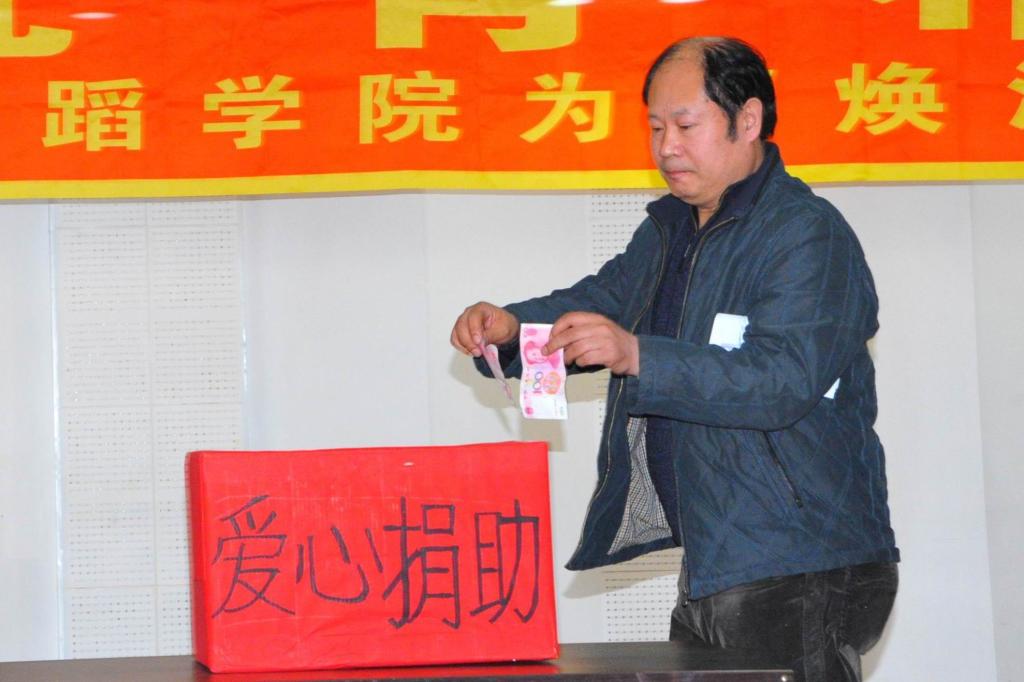 捐款活動由該院黨委副書記、副院長劉婧姝主持,學(xué)院黨委書記蔡云凌、院長孫相根、副院長包明德與全體師生參加了捐款活動。該院黨委書記蔡云玲發(fā)表講話,她呼吁全院師生伸出愛心之手,幫助不幸患病的同學(xué)。該院團(tuán)委副書記劉武龍同學(xué)飽含深情地宣讀了愛心捐助倡議書,該院副書記、副院長劉婧姝宣布捐款開始。排練廳里響起那首深沉的《愛的呼喚》,關(guān)愛的情感在每個(gè)人的內(nèi)心澎湃翻騰……該院黨委書記蔡云凌、院長孫相根等領(lǐng)導(dǎo)帶頭捐款,全體教師慷慨解囊,同學(xué)們更是紛紛伸出友愛之手,捐出了原本屬于自己的生活費(fèi)。捐款箱前,參加捐贈的隊(duì)伍排成了一條長龍,一張張捐款化為一聲聲祝福語,一份份心意凝結(jié)成一片片牽掛情。