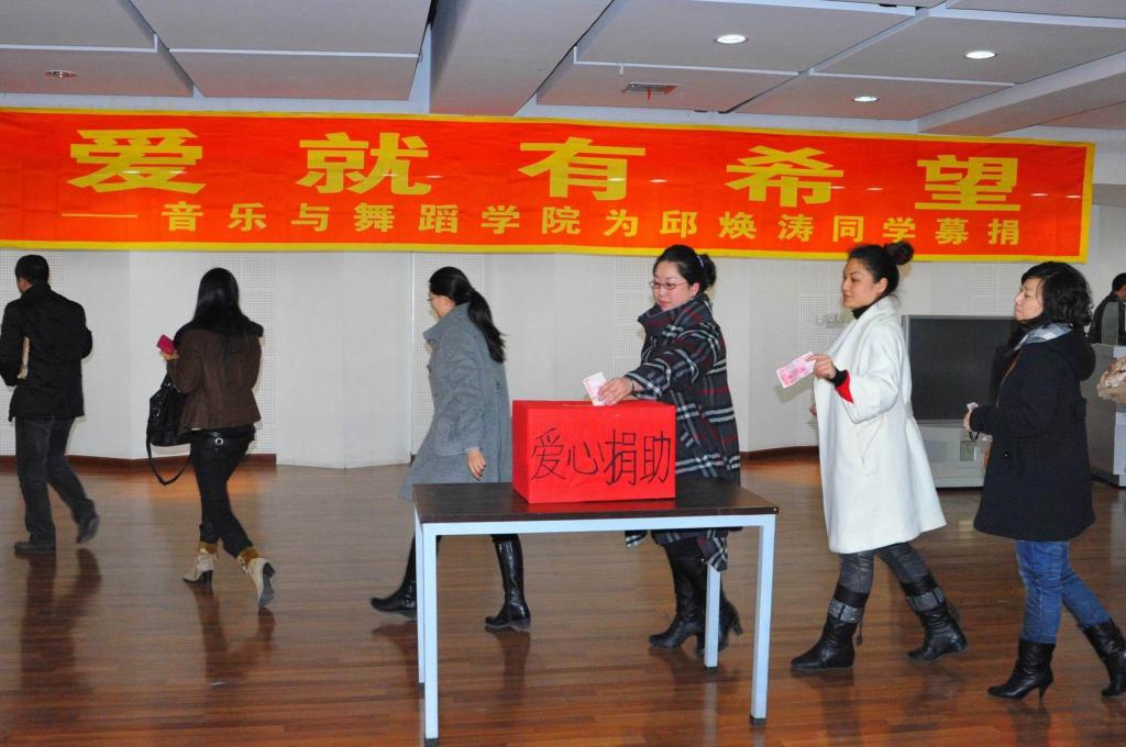 一個(gè)蓬勃向上的同學(xué)遭此不幸,一個(gè)青春韶華學(xué)子的生命危在旦夕。一個(gè)原本負(fù)債累累的普通家庭雪上加霜,一雙憔悴無助的父母萬般無奈寫信向音樂與舞蹈學(xué)院求助。得悉訊息,該學(xué)院領(lǐng)導(dǎo)高度重視,全體師生愛心潮涌。學(xué)院決定,舉全院師生之力挽救邱煥濤同學(xué)的生命,一場“有愛就有希望”的愛心捐助活動由此在該學(xué)院蓬勃展開。