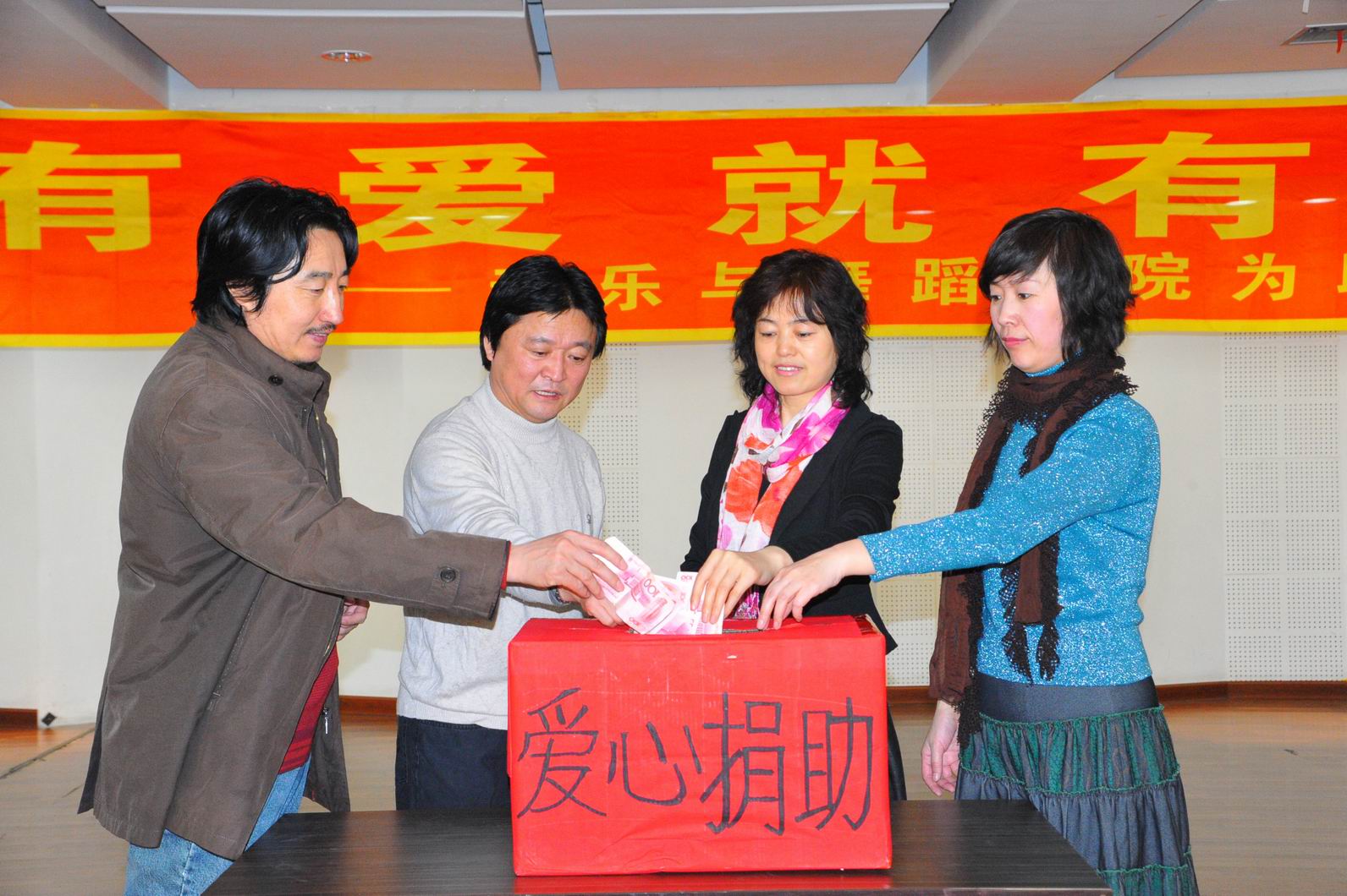 3月24日下午2:30,北國鶴城,春寒料峭,藝術(shù)樓四樓排練廳里涌動著愛的暖流,音樂與舞蹈學(xué)院全體師生在這里集中為邱煥濤同學(xué)義務(wù)捐款,奉獻(xiàn)愛心。
