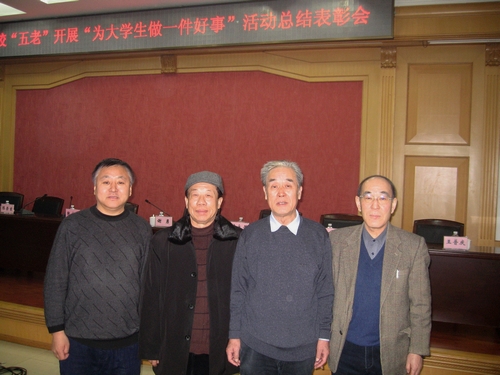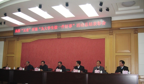 為了深入貫徹落實黨的十七大關(guān)于“動員社會各方面共同做好青少年思想道德教育工作,為青少年健康成長創(chuàng)造良好社會環(huán)境”的要求,充分發(fā)揮高?!拔謇稀?(黑龍江省普通高?!袄细刹俊⒗辖處?、老專家、老戰(zhàn)士、老模范,以下簡稱“五老”)的優(yōu)勢和作用,進一步做好大學(xué)生思想政治工作,推動高校關(guān)心下一代工作深入開展,今年年初,黑龍江省委高校工委、省教育廳、黑龍江省關(guān)心下一代工作委員會聯(lián)合印發(fā)了《關(guān)于高校關(guān)工委組織“五老”開展“為大學(xué)生做一件好事”活動的方案》的通知(黑關(guān)發(fā)[2009]6 號),組織開展了“五老”“為大學(xué)生做一件好事”活動。
