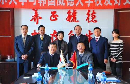 12月31日,韓國(guó)威德大學(xué)校長(zhǎng)裵度淳一行來(lái)我校訪(fǎng)問(wèn)。上午10時(shí),校長(zhǎng)馬立群會(huì)見(jiàn)了威德大學(xué)校長(zhǎng)裵度淳、中國(guó)語(yǔ)學(xué)部主任成潤(rùn)淑,對(duì)外合作處處長(zhǎng)金耿德一行3人,賓主雙方在祥和、融洽的氣氛中進(jìn)行了交流。