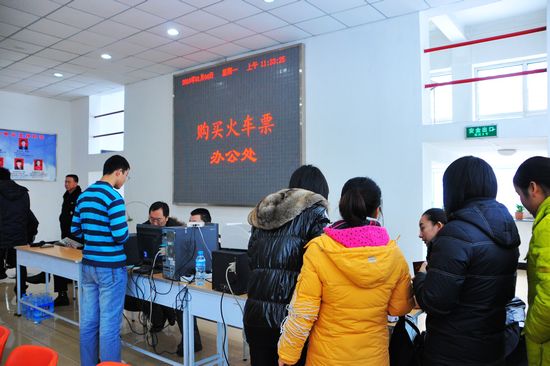 為方便廣大學(xué)生在放寒假時(shí)能夠及時(shí)、快捷地購(gòu)買到返家車票,學(xué)校特邀齊齊哈爾火車站售票處工作人員來我校學(xué)生指導(dǎo)中心大廳現(xiàn)場(chǎng)售票。經(jīng)學(xué)生指導(dǎo)中心與齊齊哈爾火車站售票處聯(lián)系,該站選派工作人員義務(wù)到我校為學(xué)生預(yù)售火車票。學(xué)生指導(dǎo)中心于2009年12月21日發(fā)出了《關(guān)于齊齊哈爾火車站到我校預(yù)售火車票的通知》,并在校園網(wǎng)上公布了齊齊哈爾火車站來我校預(yù)售火車票的詳細(xì)信息。