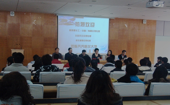 頒獎(jiǎng)大會(huì)后,三家企業(yè)代表為輕工紡織學(xué)院學(xué)生舉辦了專(zhuān)業(yè)發(fā)展、大學(xué)生就業(yè)與企業(yè)發(fā)展的專(zhuān)題講座,并召開(kāi)小型招聘會(huì)選聘2010屆畢業(yè)生。在與輕工紡織學(xué)院領(lǐng)導(dǎo)交流時(shí),三家企業(yè)代表表示:2008年以來(lái),受金融危機(jī)影響,他們?nèi)移髽I(yè)在國(guó)內(nèi)其他院校設(shè)立的獎(jiǎng)學(xué)金都已暫停,選聘畢業(yè)生工作也暫停,唯獨(dú)繼續(xù)保留了在齊齊哈爾大學(xué)輕工紡織學(xué)院設(shè)立獎(jiǎng)助學(xué)金的項(xiàng)目,并堅(jiān)持在該學(xué)院選聘畢業(yè)生。之所以這樣做,原因有三點(diǎn):首要因素是輕工紡織學(xué)院近幾年培養(yǎng)出出來(lái)的學(xué)生素質(zhì)好,為企業(yè)創(chuàng)造效益的信念堅(jiān)定,工作踏實(shí),有愛(ài)崗敬業(yè)精神,這些優(yōu)點(diǎn)感動(dòng)了他們;第二,齊大輕工紡織學(xué)院的領(lǐng)導(dǎo)經(jīng)常與企業(yè)溝通情況,關(guān)注企業(yè)需求,這種積極主動(dòng)為學(xué)生服務(wù)、為企業(yè)著想的服務(wù)態(tài)度使雙方合作共贏;第三,最難能可貴的就是齊大輕工紡織學(xué)院將畢業(yè)生送出校門(mén)還一直關(guān)心幫助他們成長(zhǎng),幫助他們解決好思想和生活中的難題,讓企業(yè)無(wú)后顧之憂(yōu);同時(shí),輕工紡織學(xué)院老師也積極幫助企業(yè)解決技術(shù)難題,讓雙方合作更愉快。輕工紡織學(xué)院的領(lǐng)導(dǎo)和老師表示,將按照學(xué)校的要求,推動(dòng)學(xué)院的科學(xué)發(fā)展,把學(xué)生培養(yǎng)好,讓企業(yè)滿(mǎn)意,讓社會(huì)滿(mǎn)意。