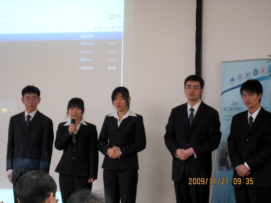 我校高度重視此次賽事。在我校實(shí)踐教學(xué)與設(shè)備管理處、教務(wù)處、科技處、團(tuán)委、化工學(xué)院等部門的高度重視與大力支持下,今年5月,我?;は到M織發(fā)起了校內(nèi)化工設(shè)計初賽。我?;は?、制藥工程系、高分子材料系、環(huán)境工程系、無機(jī)材料系、機(jī)械系的60名學(xué)生組成了12支代表隊參加了校內(nèi)初賽。通過嚴(yán)格的校內(nèi)選拔,由化工系黃凱(隊長)、朱建松、賈鳳君、高分子材料系劉娜、機(jī)械系陳振宇同學(xué)組成逐夢人隊和化工系米立蘭、孟愷、制藥工程系李興濤、姚志偉、機(jī)械系韓飛組成的New-UFC隊在12個校內(nèi)代表隊中成績突出,取得了代表我校參加2009年華北賽區(qū)第三屆“三井化學(xué)”杯化工設(shè)計選拔賽的資格。