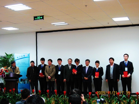 (我校代表隊接受大賽頒獎:右二為中國化工學(xué)會化學(xué)工程專業(yè)委員會秘書長屈一新,右四為三井化學(xué)(上海)有限公司負(fù)責(zé)人船越良幸,右六為中國化工學(xué)會秘書長、中國石油化工股份有限公司教授級高級工程師洪定一, 右八為浙江大學(xué)材料與化學(xué)工程學(xué)院院長李伯耿,右十為華東理工大學(xué)教授房鼎業(yè)。)