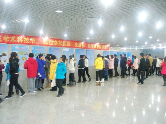此次“挑戰(zhàn)杯”競賽成果回顧展,吸引了大批在校師生前來觀看,各種不同類型的展品通過圖片的形式呈現(xiàn)在人們的面前?,F(xiàn)場科技氛圍濃厚,那么多激動人心的歷史場景和難忘的畫面,被一張張圖片定格為永恒的瞬間;那么多激情燃燒的崢嶸歲月和閃光的日子,被一段段文字書寫成不朽的記憶。學(xué)子們?nèi)宄扇旱卦谝黄鹩懻?,分享著學(xué)長們的成功與喜悅。
