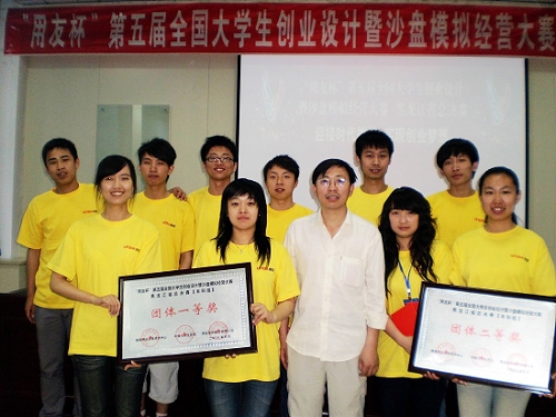 我校經(jīng)濟(jì)管理學(xué)院由苗雨君副教授帶隊(duì)參加了此次大賽。信管061班王天明(總經(jīng)理CEO)、財(cái)管089班趙佳雯(財(cái)務(wù)總監(jiān))、營(yíng)銷074王繼欣(采購(gòu)總監(jiān))、信管061班徐亮文(生產(chǎn)總監(jiān))、信管061班左依楠(營(yíng)銷總監(jiān))組成的一隊(duì)和由財(cái)管067班何玲(總經(jīng)理CEO)、財(cái)管061班姚迪(財(cái)務(wù)總監(jiān))、信管061班賈金成(生產(chǎn)總監(jiān))、營(yíng)銷074班王喜澤(采購(gòu)總監(jiān))、營(yíng)銷074施全(營(yíng)銷總監(jiān))組成的二隊(duì)參加了比賽。在實(shí)踐教學(xué)與設(shè)備管理處的大力支持下,在苗雨君副教授、張?jiān)挛浣淌诘木闹笇?dǎo)下,參賽同學(xué)經(jīng)過(guò)近一天的激烈商場(chǎng)拼殺、角逐后,一隊(duì)獲冠軍,二隊(duì)以第三名的成績(jī)獲得二等獎(jiǎng),苗雨君、張?jiān)挛浍@優(yōu)秀指導(dǎo)教師稱號(hào)。