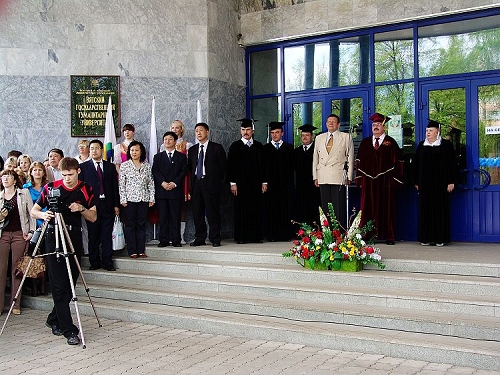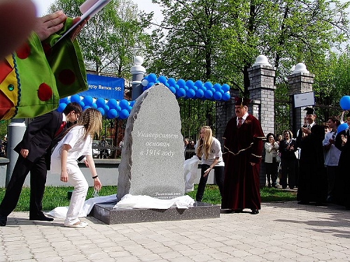 馬立群校長一行乘飛機于14日凌晨1:00到達基洛夫機場,維大外事處處長伊琳娜到機場迎接,到達賓館時已是凌晨3:00,第二天9:00將參加維大建校95周年紀念碑揭幕儀式。