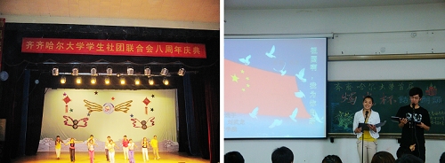 以“傳承鶴城旅游文化,展現(xiàn)齊大旅游氣息”為主題的“首屆旅游文化節(jié)”于5月25日晚在中區(qū)文化宮閉幕,此次旅游文化節(jié)包含了旅游線路設計大賽、導游風采大賽、景區(qū)實踐等多項特色活動,并且在開幕式上播放了大型鶴城紀錄片《鶴舞北疆》。棋牌協(xié)會組織的“第九屆棋王爭霸賽”、動漫協(xié)會新穎別致的“動漫作品展”等一系列精彩的社團活動豐富了社團活動內容。目前,我校參加的齊齊哈爾市四所高校聯(lián)合舉辦的“第三屆校園模特大賽”、“第六屆校園街舞大賽”、“英語四六級模擬考場”等一系列獨具魅力的社團活動正有序推進中。