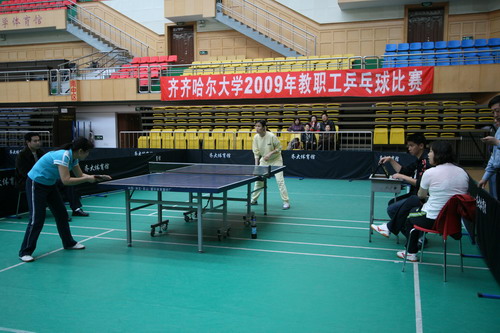 齊齊哈爾大學(xué)工會2009年教職工乒乓球比賽從4月8日開始,男、女共計(jì)27個(gè)代表隊(duì),100多名運(yùn)動(dòng)員,7個(gè)項(xiàng)目,經(jīng)過400多場次,1600多盤比賽,歷時(shí)9天的激烈角逐,在4月20日下午圓滿結(jié)束。