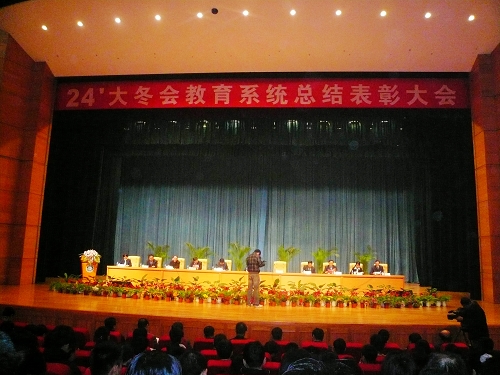 在第24屆世界大學(xué)生冬季運(yùn)動(dòng)會(huì)籌備和召開(kāi)期間,我校在火炬?zhèn)鬟f、開(kāi)閉幕式、接待和志愿服務(wù)等方面作出了大量艱巨繁重的工作,為大冬會(huì)的成功舉辦做出突出貢獻(xiàn),我校被評(píng)為特殊貢獻(xiàn)集體,我校孫金龍等7名同志被評(píng)為大冬會(huì)特殊貢獻(xiàn)個(gè)人,孟娜、沈艷剛2名同學(xué)被評(píng)為大冬會(huì)優(yōu)秀志愿者。