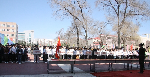 4月22日,是第40個(gè)世界地球日。中午1:00,校團(tuán)委開展節(jié)約型校園、關(guān)愛型校園、文化型校園(“三型校園”)建設(shè)活動(dòng)啟動(dòng)儀式在藝術(shù)學(xué)院北門前廣場(chǎng)隆重舉行。